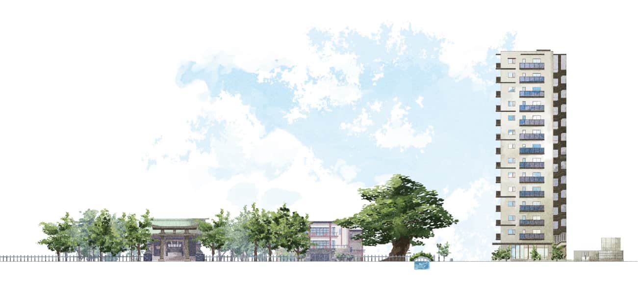 ※4 掲載のCGは図面をもとに描き起こした完成予想図と現地付近の写真(2025年8月撮影)を合成しCG加工を施したもので、実際とは多少異なります。