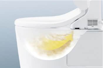 自動で便器にミスト(水)をふきつけて水のクッションを作り、汚れをつきにくくします。