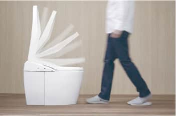 人の動きを検知して、便ふたが自動で開閉。閉め忘れがないので、暖房便座の保温性が高まり、節電にも効果的です。