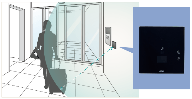 ロビーに設置したリーダーが検知範囲内の人を感知。
