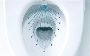 自動で便器にミスト(水)をふきつけて水のクッションを作り、汚れをつきにくくします。
