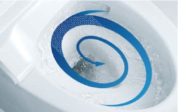 渦を巻くトルネード水流が、少ない水量を有効に使ってしつこい汚れもきれいに洗浄します。