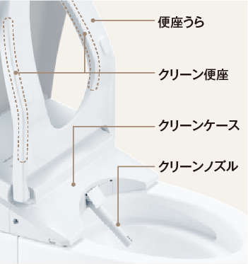 ウォシュレット使用後に、ノズルの内側も外側も自動で洗浄・除菌。使用していないときも定期的に洗浄し、ノズルの清潔を保ちます。
