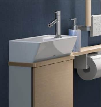 トイレ空間をすっきりスタイリッシュに演出する、使い勝手の良い手洗いカウンターを設置。カウンター下のキャビネット内にはトイレのお掃除用品をスッキリ収納できます。